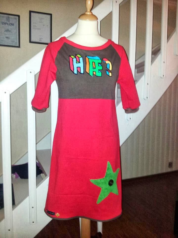 Det har vært ekstremt lite sying dette året, det eneste som har sett dagens lys er en kjole, Gammel t-skjorte blir som ny :) Heia Kevin, takk for den !!! Og en bouclejakke/kåpe som skulle være ensfarget brun.....hmm hadde nok vært og klippet i stoffet fra før så det ble litt lite ja. Fant på å bruke tosa boucle i egenkomponert hette istedenfor den opprinnelige kragen som var i mønsteret . Klæsjet på rosa hjerte på armene og brukte rosa tråd rundt kantene.